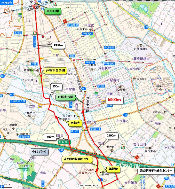 コース 7Km 難易度:普通 東川口駅前広場(WC)⇒戸塚下台公園(WC)⇒>西福寺(WC)⇒埼玉県花と緑の振興センター(昼食、WC)⇒ 興禅院・弄財天⇒JA安行園芸センー(WC)⇒戸塚安行駅前広場(解散)