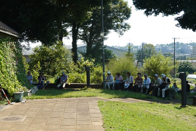 昨日降り続いた雨も上がり快晴の中芦花公園駅南口近くの公園で出発式。当初予定していた「世田谷文学館」は 休日振替の休館日に当たり前を通過。緑の木々の遊歩道を歩き「蘆花恒春園」へ。明治・大正期の文豪、徳冨蘆花(健次郎)と愛子夫人が、 後半生を過ごした住まいや竹林や手入れされた園内を散策、蘆花記念館を見学。 感情8号線沿いの小川が流れる遊歩道「水辺の散歩道」を歩き、レンガ造りのトンネルを潜り「希望ヶ丘公園」で休息。 烏山川を暗橿にした「烏山緑道」を歩き「石仏公園」で休息し、万葉集に詠まれた草花が植えられている「万葉の小道」 を歩き「桜木ふれあい公園」で昼食後「世田谷八幡宮」へ。 かつては奉納相撲の勝敗によって来年の豊作・凶作を占ったり、今年の豊作を感謝したため、境内には土俵や力石があり、 今でも毎年秋の例祭(9月15日)には東京農業大学相撲部による奉納相撲が行われている「世田谷八幡宮」境内で解散式。 ここから10分程度に「豪徳寺」がある。