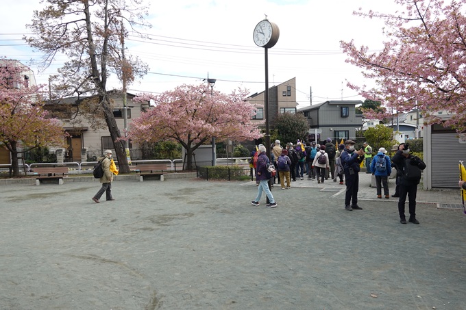 晴れ 参加者52名 コース6.5Km(最寄駅:北野駅・京王線) 難易度 普通 歩くコース:芦花公園駅南口広場(出発式)⇒水際の散歩道⇒烏山緑道⇒希望が丘公園(wc)⇒ 石仏公園(WC)⇒万葉の小道⇒桜木ふれあい緑地(昼食・WC)⇒世田谷八幡宮(解散式)⇒宮の坂駅