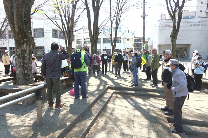歩くコース:さくら児童公園⇒小作緑地公園⇒小作取水堰⇒阿蘇神社(休息)⇒多摩川沿い⇒チュウリップ公園(WC)⇒羽村取水堰(昼食・WC)⇒児童公園(解散式)⇒羽村駅