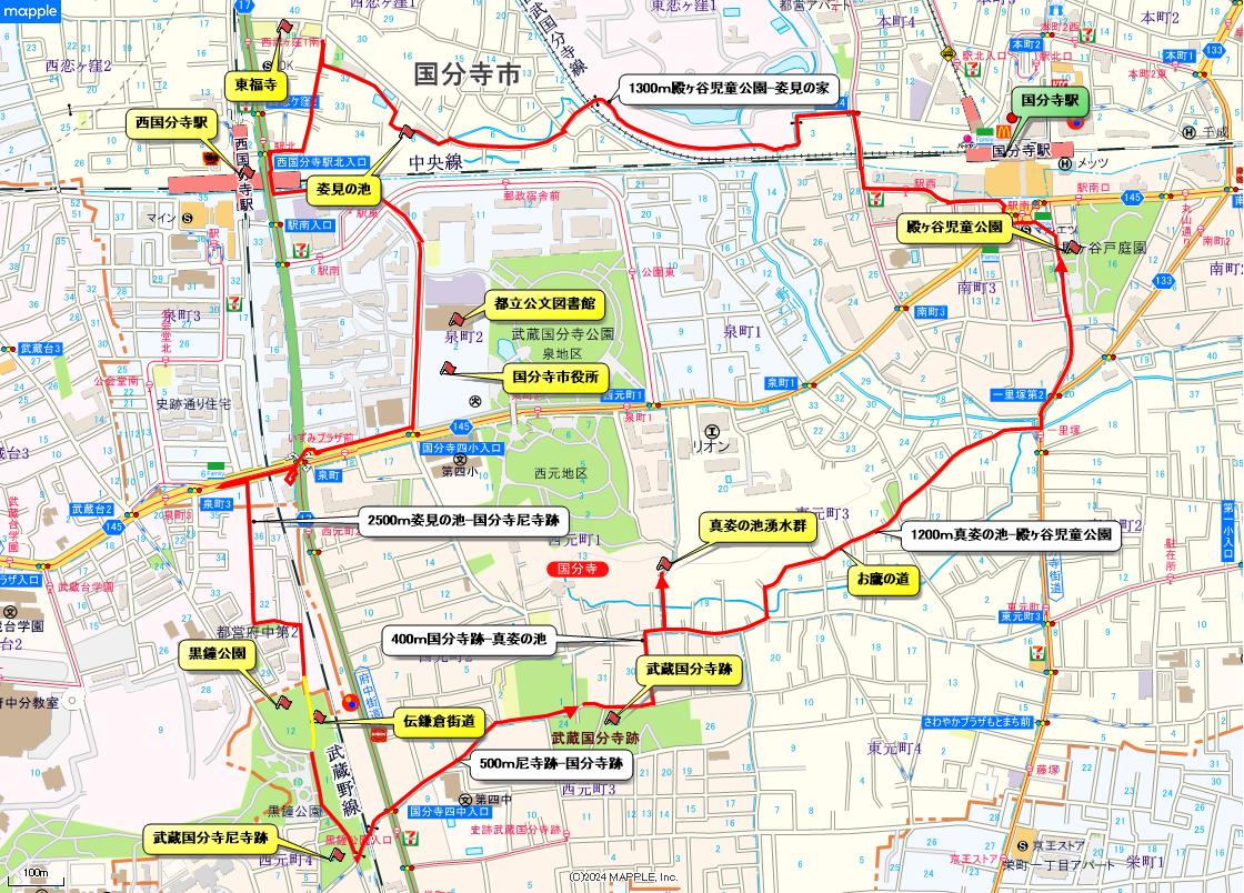 国分寺は、741年に聖武天皇が仏教による国家鎮護のため、当時の日本の各国に建立を命じた寺院であり、国分僧寺と国分尼寺に 分かれる。寺域は、国分寺跡、国分尼寺跡を合わせて、僧寺金堂を中心に東西1500m、南北1000mの範囲に及ぶとみられる。 国分寺崖線の南側すぐの位置にあり、かつては東山道武蔵路を挟む形で東側には武蔵国分僧寺、西側には武蔵国分尼寺が立地していた。 現在は、両寺院の間を府中街道とJR武蔵野線が横切っている。